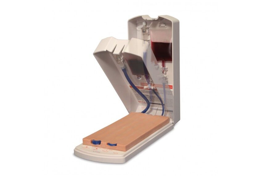 - Com a quarta veia profundamente colocada, todas as veias estão dentro do nosso exclusivo Dermalike ™ sem látex para um cenário de treinamento realista, assim como acessar um paciente real! À medida que o cateter IV entra na veia, um refluxo realista de sangue simulado confirma a colocação adequada da agulha.