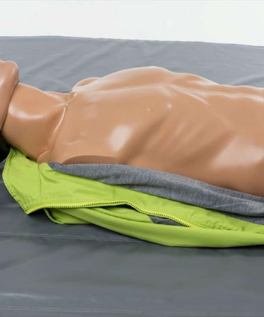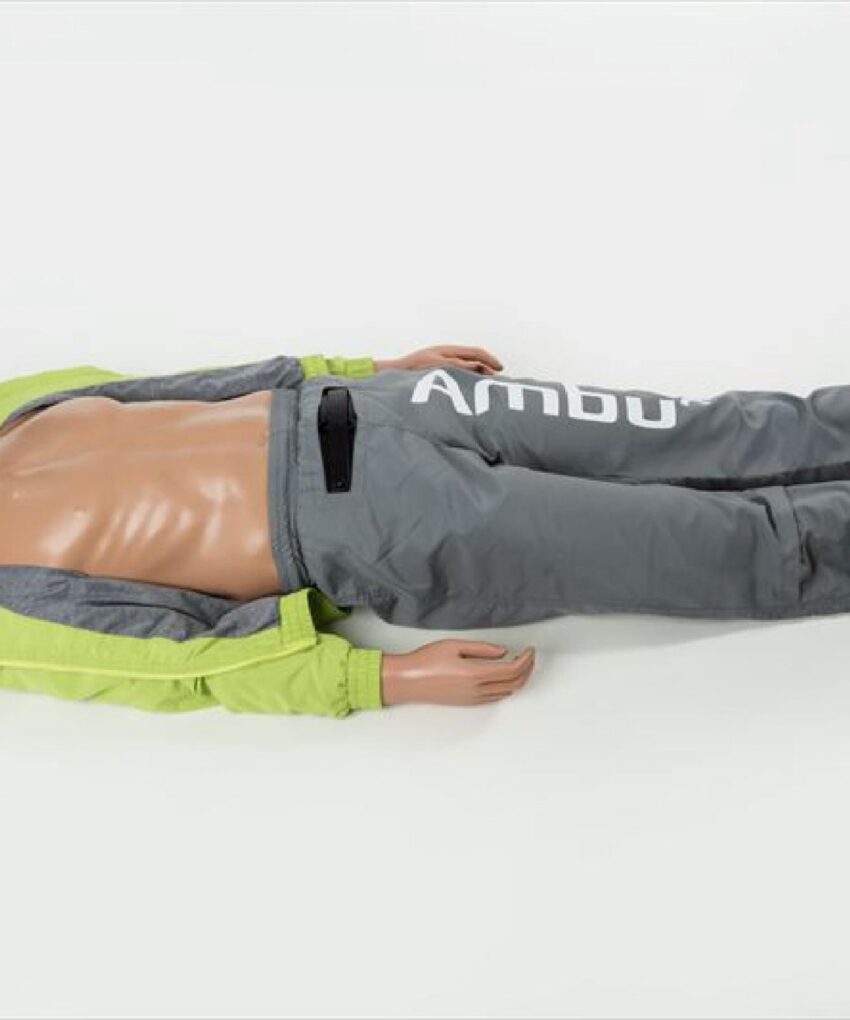 - O manequim também está equipado com um instrumento de monitoramento mecânico que mostra a eficácia da ressuscitação, incluindo os resultados obtidos para o volume de ventilação e a profundidade da compressão torácica. Além disso, indica qualquer inflação do estômago e posicionamento incorreto das mãos