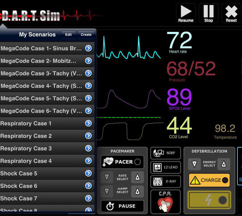 O DART Sim é um software de simulação de ECG que oferece treinamento realista em ritmos cardíacos e monitoramento. Desenvolvido para instrutores, instituições de ensino e profissionais da saúde, o sistema possibilita a prática de avaliação de traçados e resposta a cenários clínicos em tempo real.