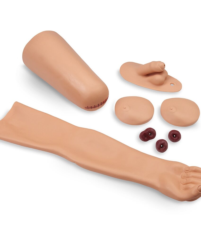 - Braço e mão de treinamento avançado para técnicas de IV, IM e sub-Q