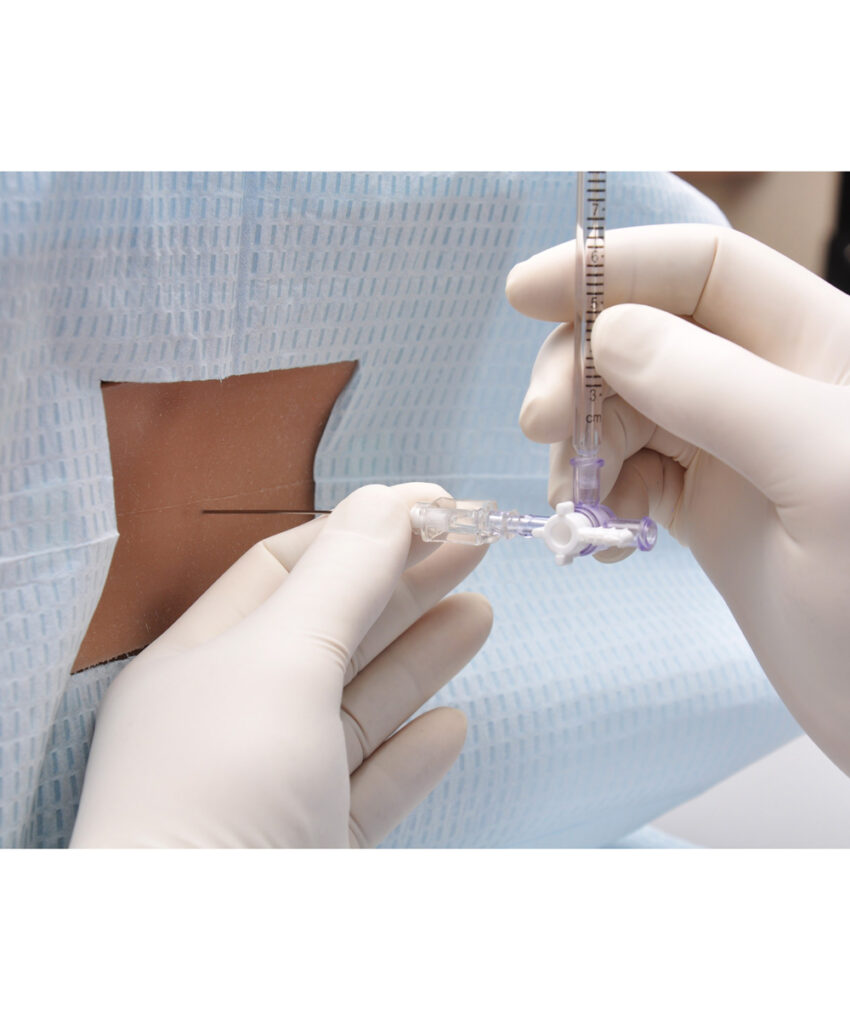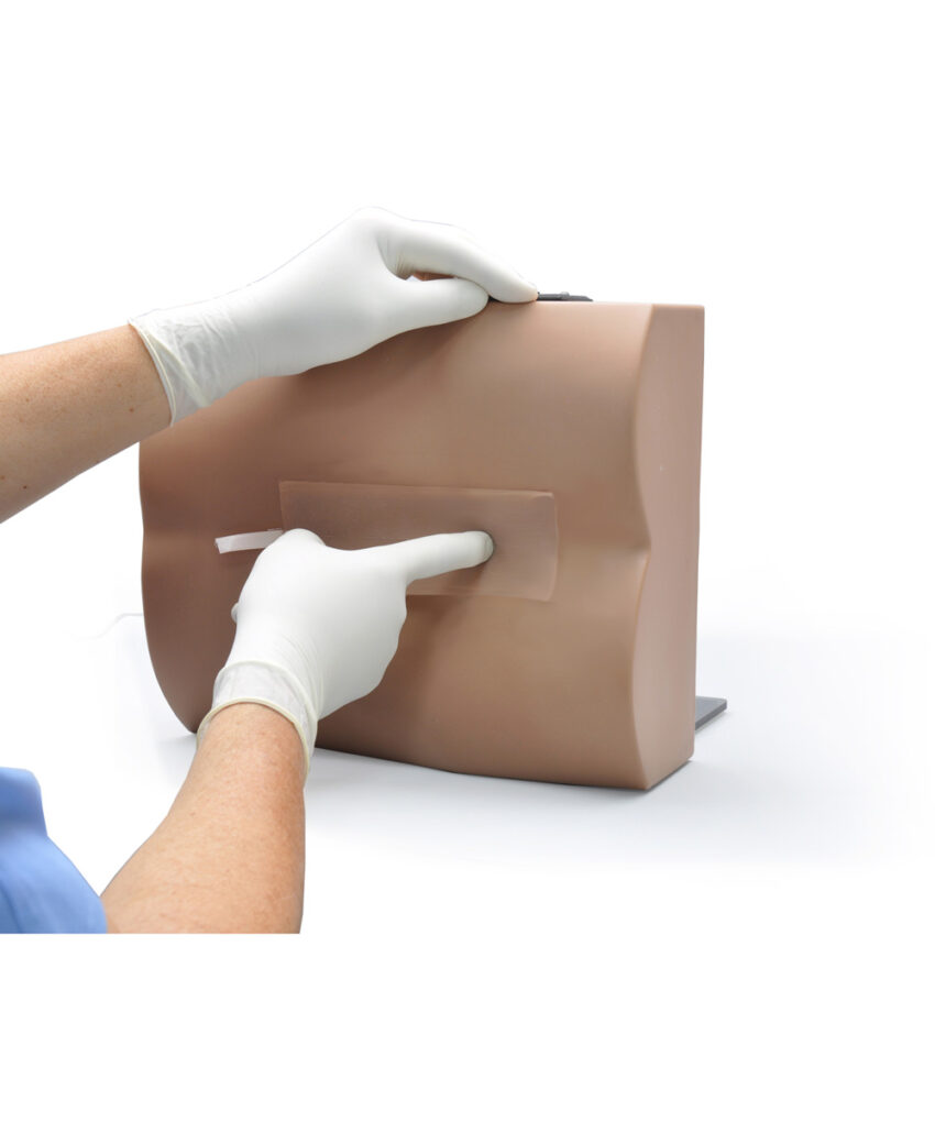Simulador de punção lombar, treinamento de anestesia epidural, Gaumard Lumbar Puncture Trainer, prática de procedimentos espinhais, sistema de fluido cérebro-espinhal, simulador de coluna lombar.