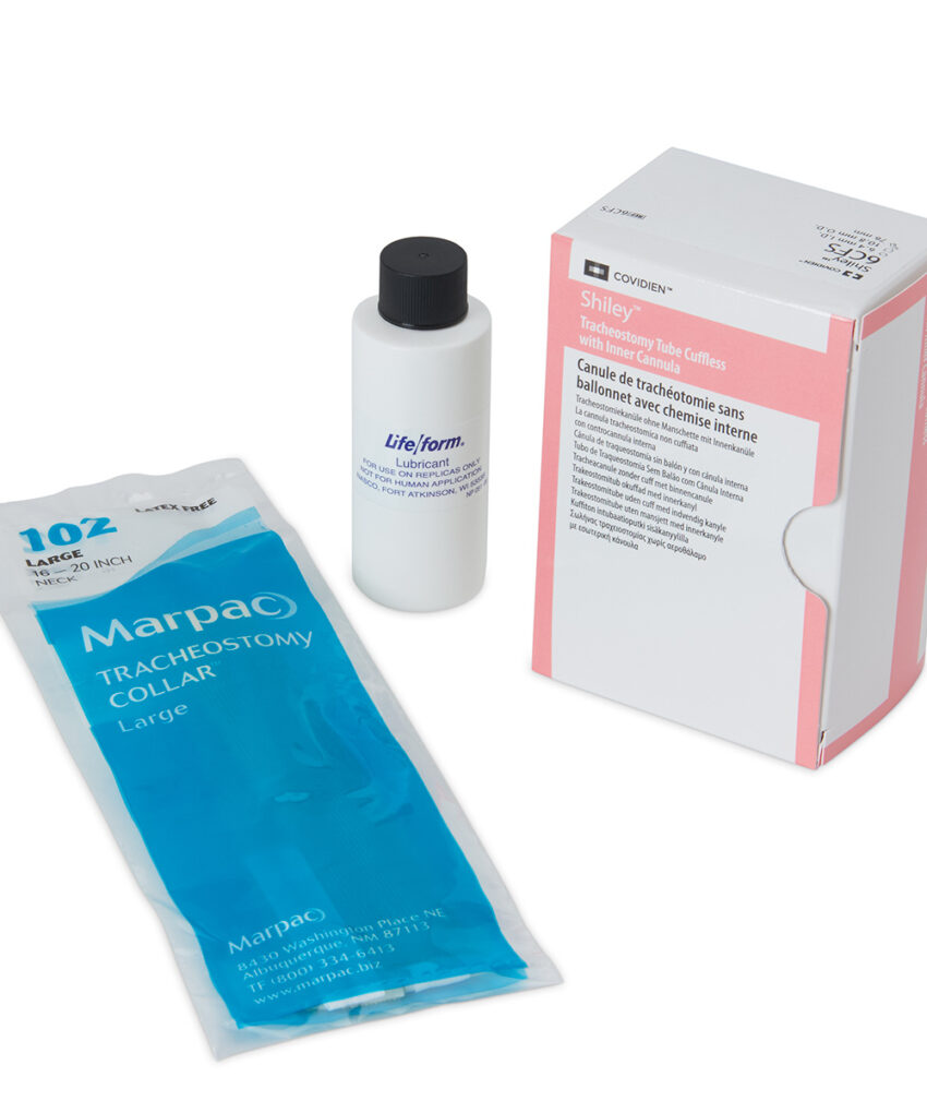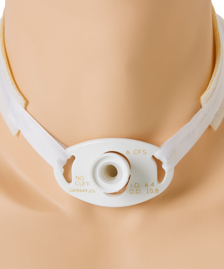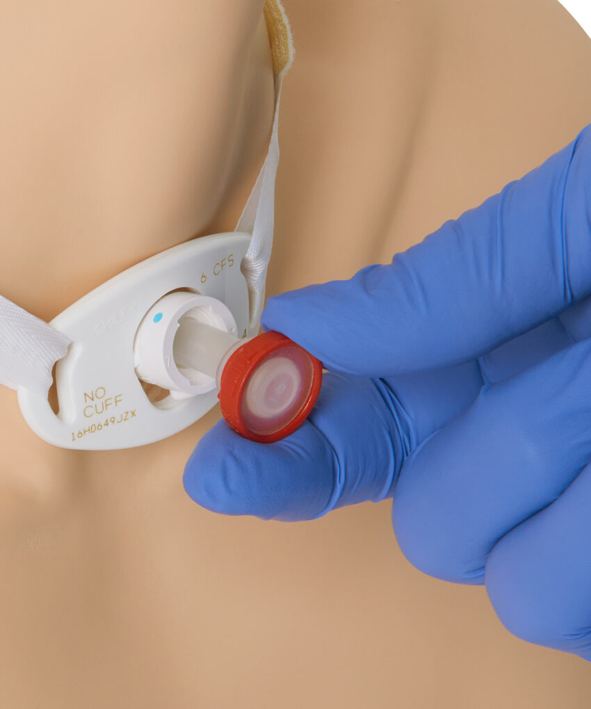 - A limpeza e a manutenção do local traqueal externo podem ser realizadas exatamente como em um paciente real