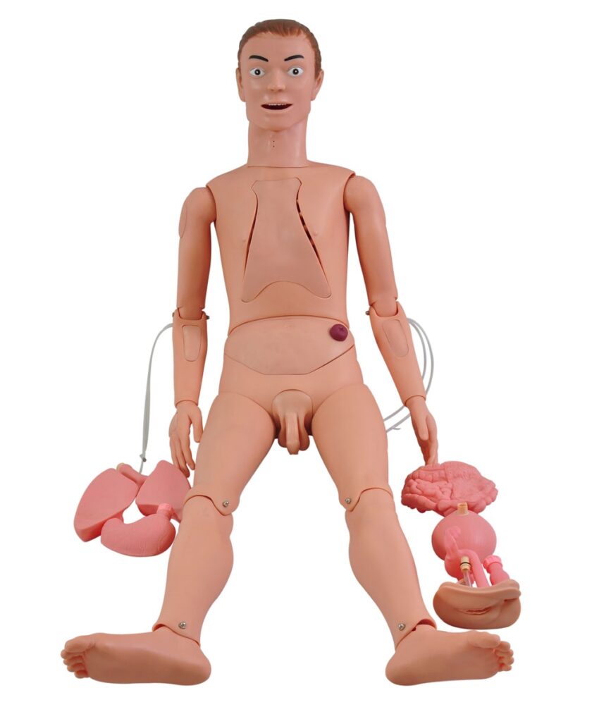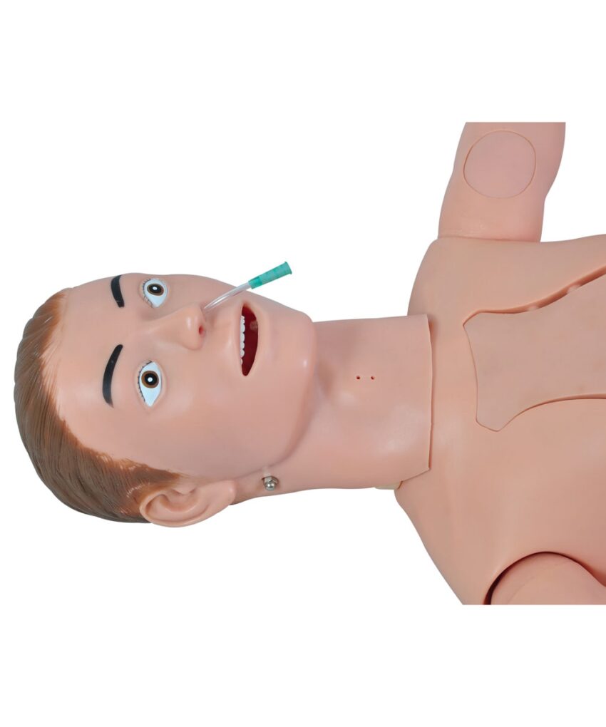 - Cabeça com movimentos naturais e com olhos, nariz com possibilidade de passagem de sonda, boca com dentes, língua, palato duro e mole, Laringe, Faringe;
