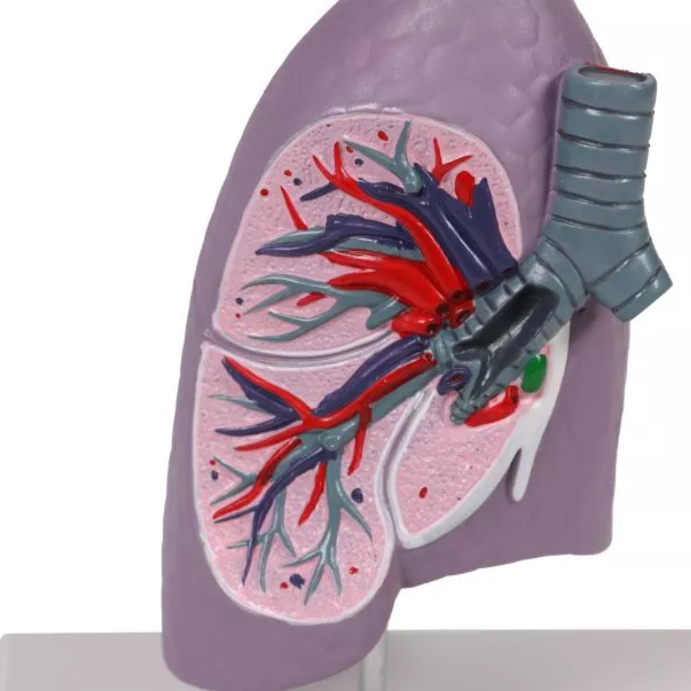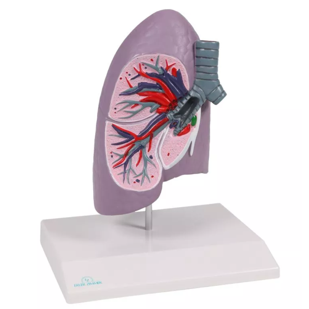 O Modelo Anatômico de Meio Pulmão em Tamanho Real com Realidade Aumentada – G253, fabricado pela Erler-Zimmer, é uma ferramenta didática de alta precisão, desenvolvida para fins educacionais e demonstrativos em instituições de saúde e ensino superior. Produzido em PVC rígido e atóxico, o modelo replica com fidelidade as estruturas anatômicas do pulmão direito humano, permitindo análise detalhada de sua morfologia.