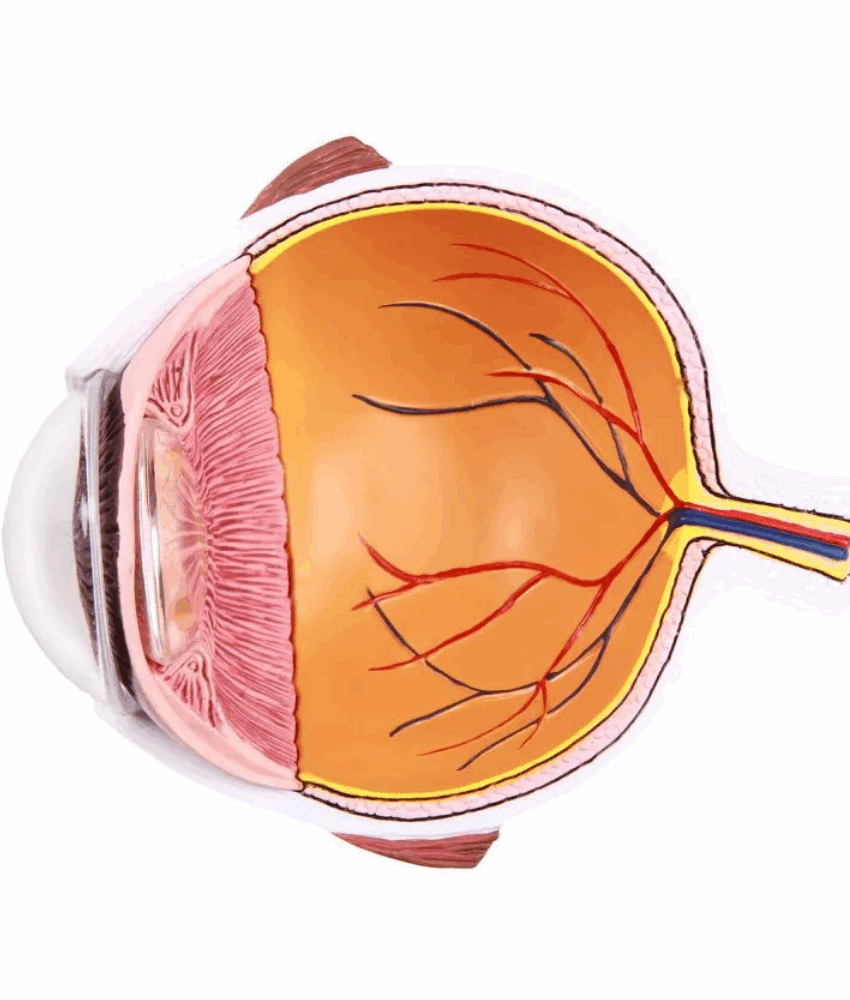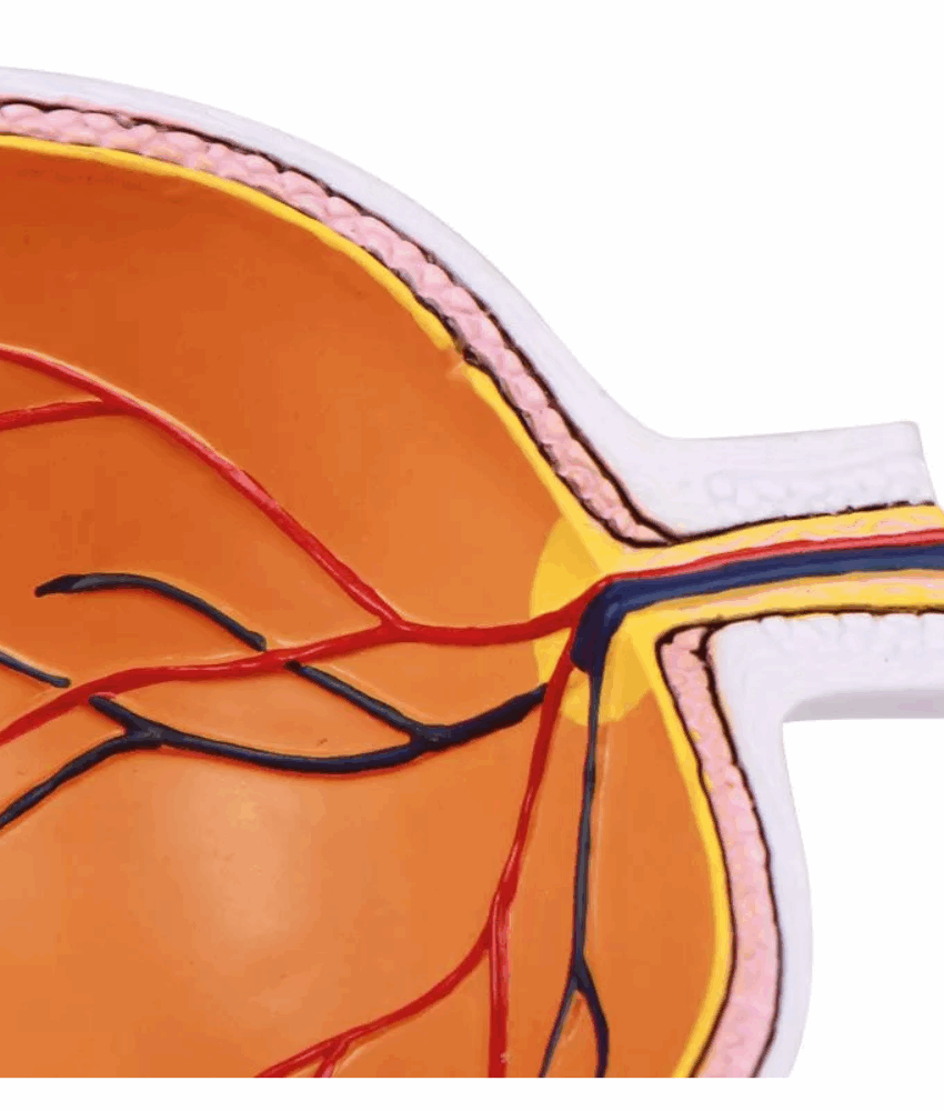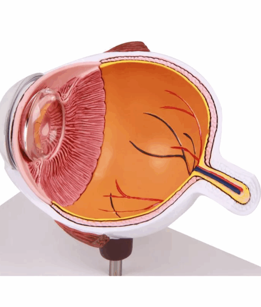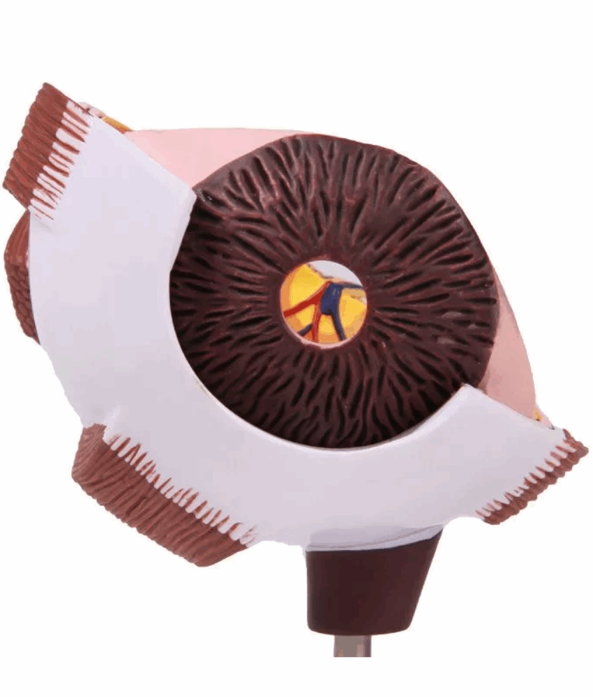 01 Modelo anatômico de metade do olho ampliado, com representação detalhada das estruturas internas
