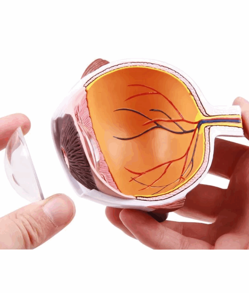 Peças removíveis: lente e córnea destacáveis para estudo aprofundado.