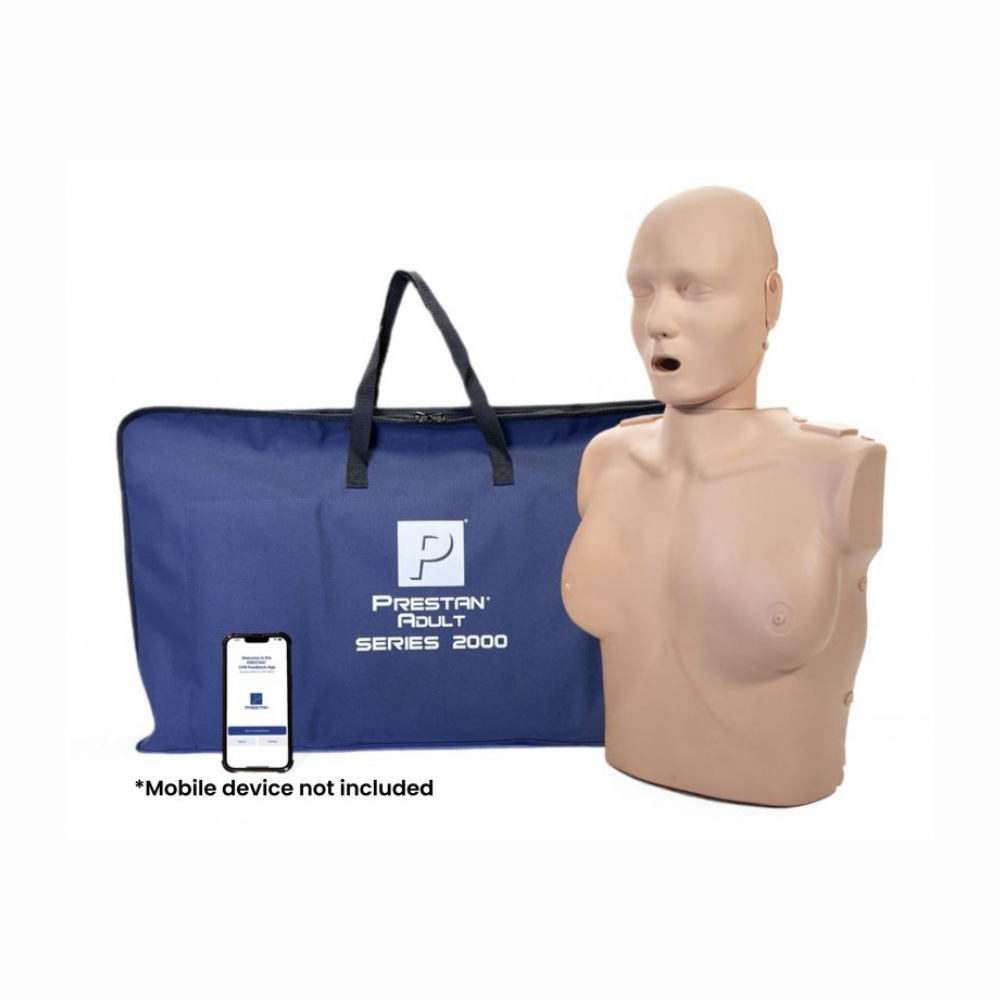 O Prestan Professional Female Series 2000 Manikin é um manequim adulto com aparência feminina, projetado para treinamentos de RCP (ressuscitação cardiopulmonar), incorporando feedback avançado em tempo real por meio de aplicativo Bluetooth.