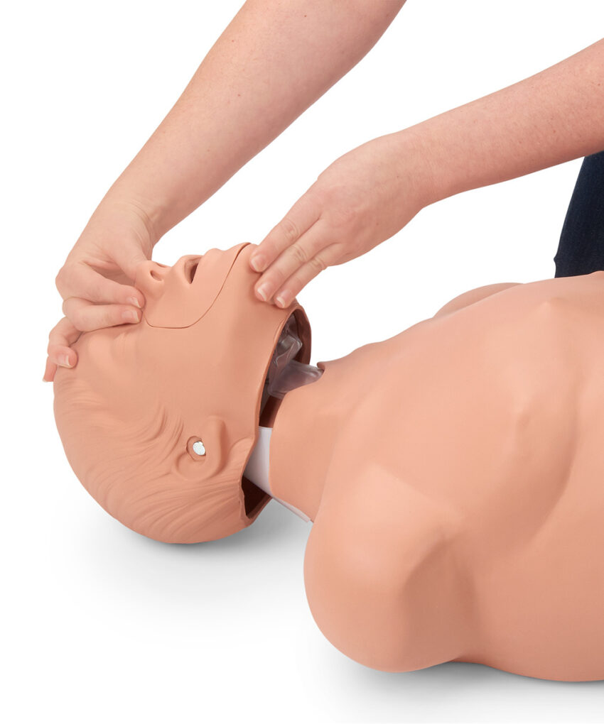 - Inclinação realista da cabeça e elevação do queixo para abrir a via aérea
