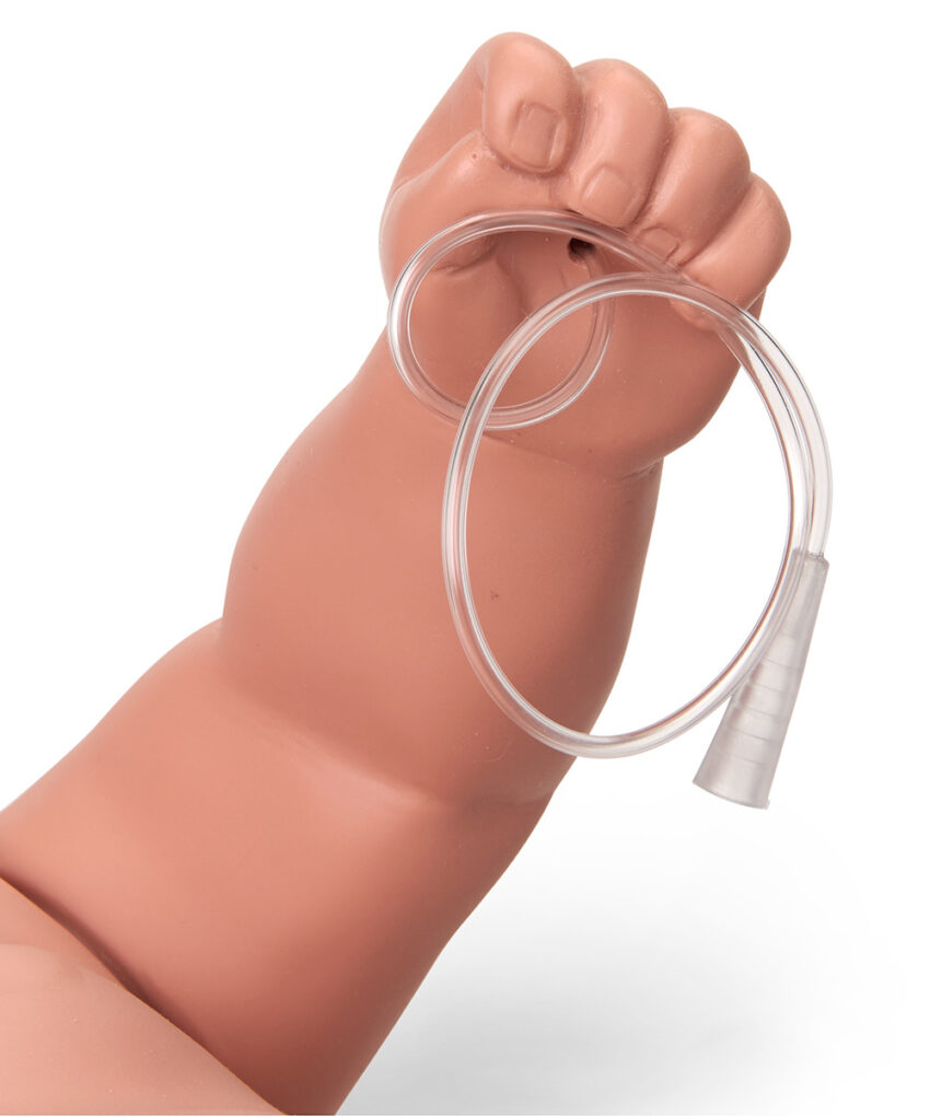 - Acessos intravenosos na mão e no braço para colher sangue ou injetar líquidos