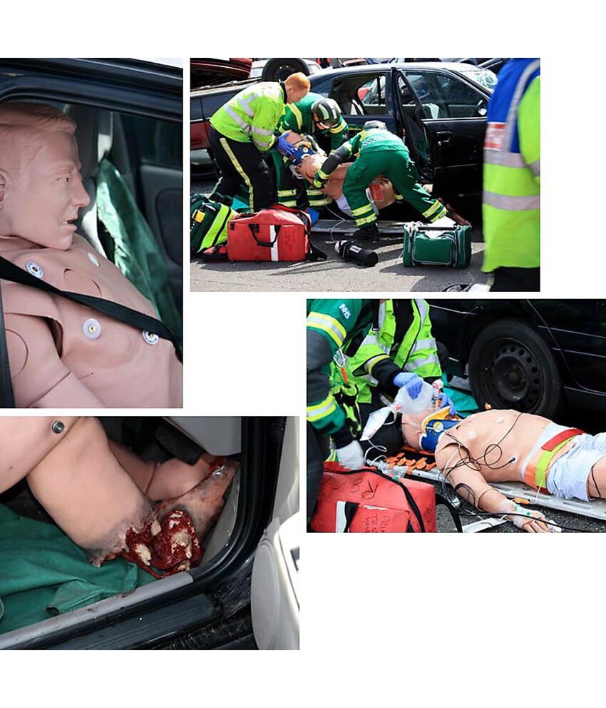 - Almofadas de pneumotórax, veias IV, locais de injeção IM, almofadas, almofadas IO, peles de pescoço para cricotireotomia, conjunto de dentes e lubrificante para intubação