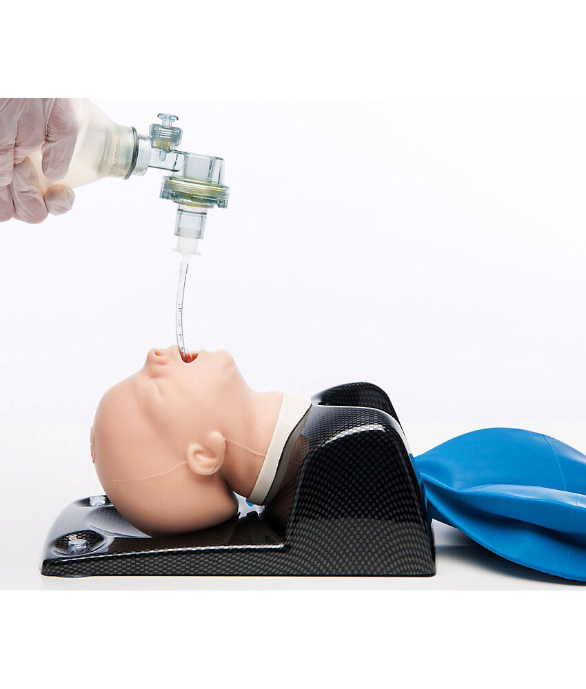 Pele com recobrimento “real feel” para maior realismo ao manusear máscara, dispositivos supraglóticos, laringoscopia, etc